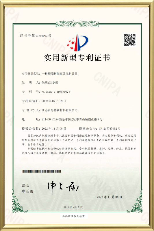 Som tillverkare inom polyesterhartsindustrin, Jiangsu Besd New Materials Co., har Ltd varit engagerad i forskning och utveckling och produktion av högpresterande polyesterhartser sedan dess etablering 1998. Företaget är beläget i Yangzhou Chemical Industry Park, Yizheng City, Jiangsu-provinerna och har avancerat automatiskt produktionslinjer och en professionell r & d-team.